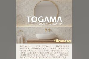 Tilemaster presents a New Collection from Spain – Mythos, Petra & Sixties, highlighting hexagonal Mosaics crafted from recycled glass. These are consistent with the manufacturer’s