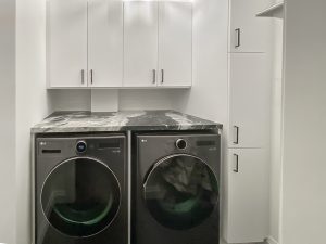 Laundry rooms have become not just a utility room secluded away from family life, but rather a continuation of your home, a pleasant area in which you spend so much of your time. We will work with you to design a functional space which also reflects your style and complements the adjoining rooms. Deep laundry sinks , space-saving washers and dryers, folding areas, hanging racks, built-in ironing board, base cabinets with pull-out laundry hampers, task lighting, cabinetry for cleaning supplies–all things to consider when planning your laundry room.